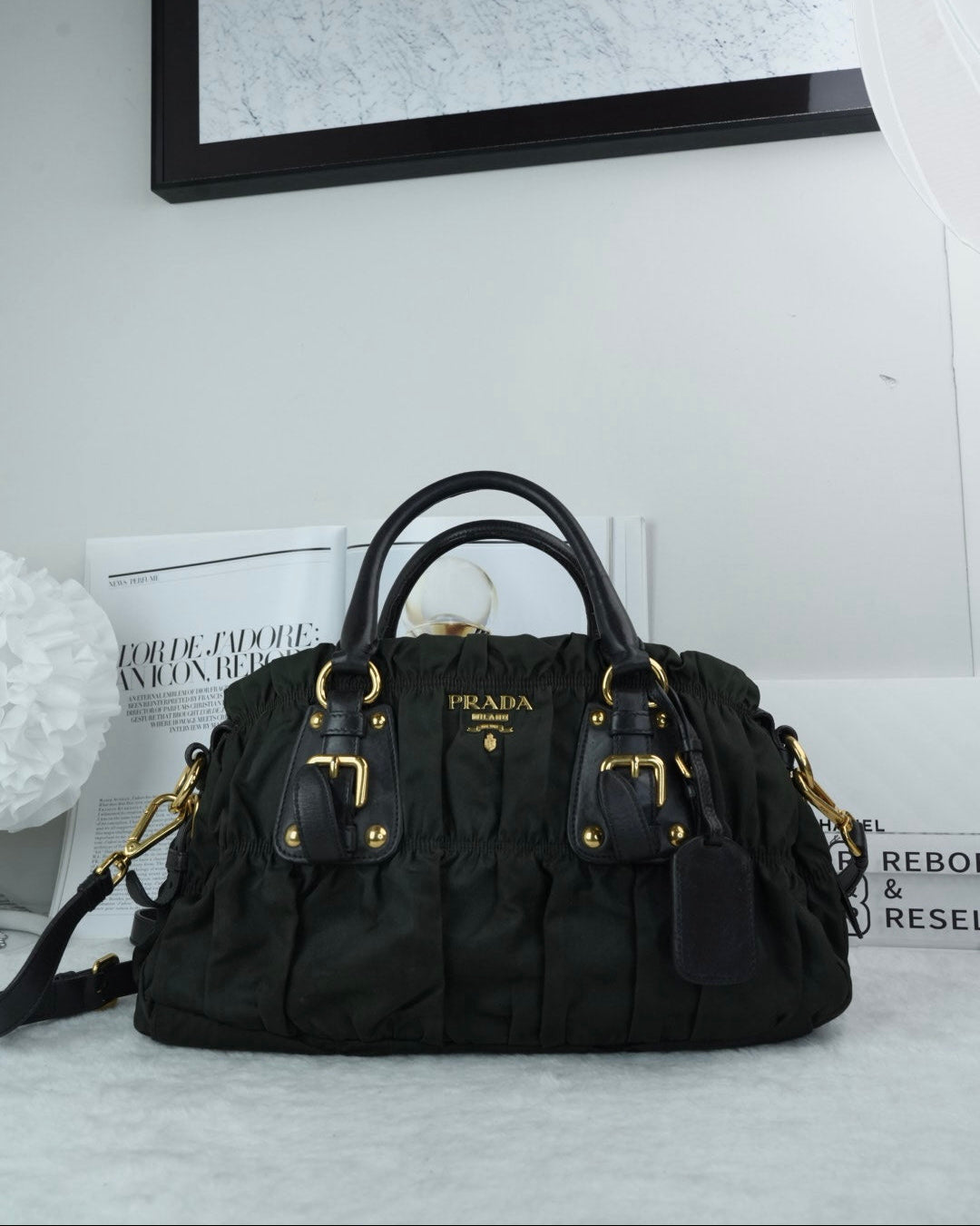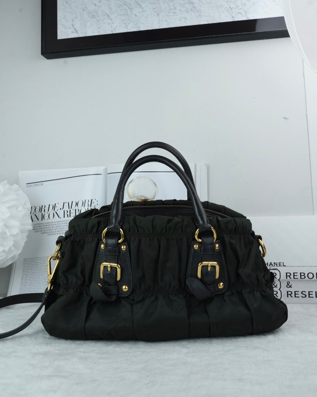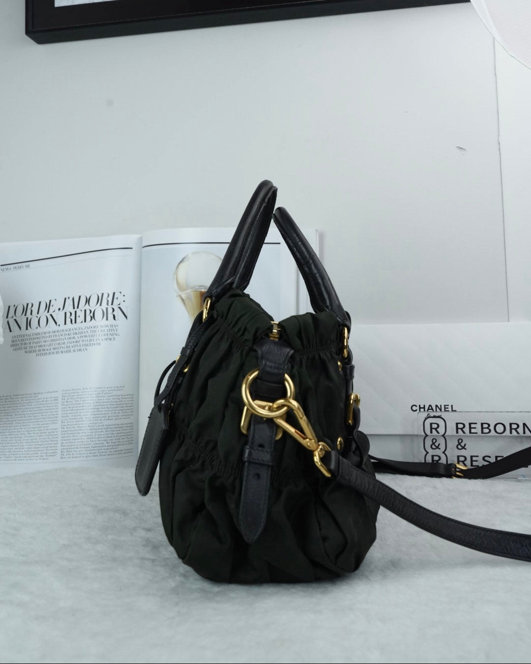 Model: Tessuto Nylon Gaufre Tote Bag (also known as a satchel)